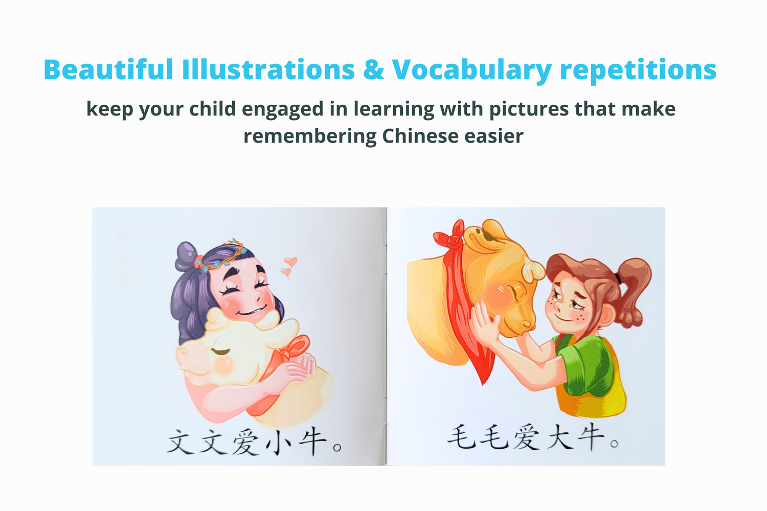 Beautiful Illustrations & Vocabulary repetition keep your child engage in learning, and making learning challenging Chinese characters much easier to remember
