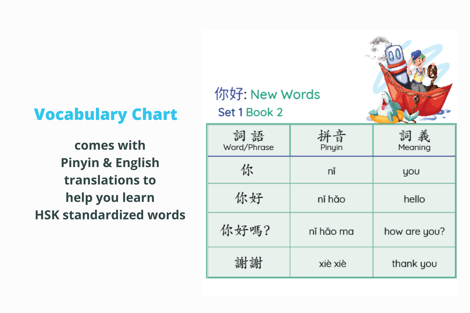 New vocabulary chart comes with Pinyin & English translation to help you learn HSK standardized words