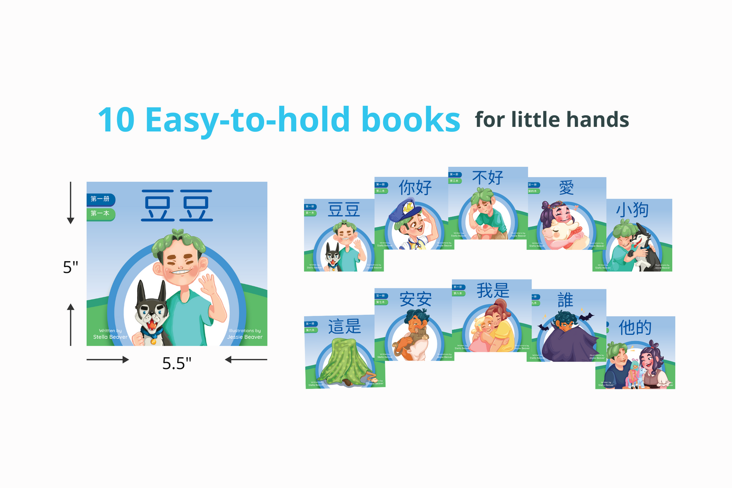 10 easy-to-hold books for little hands (size: 5” x 5.5”)